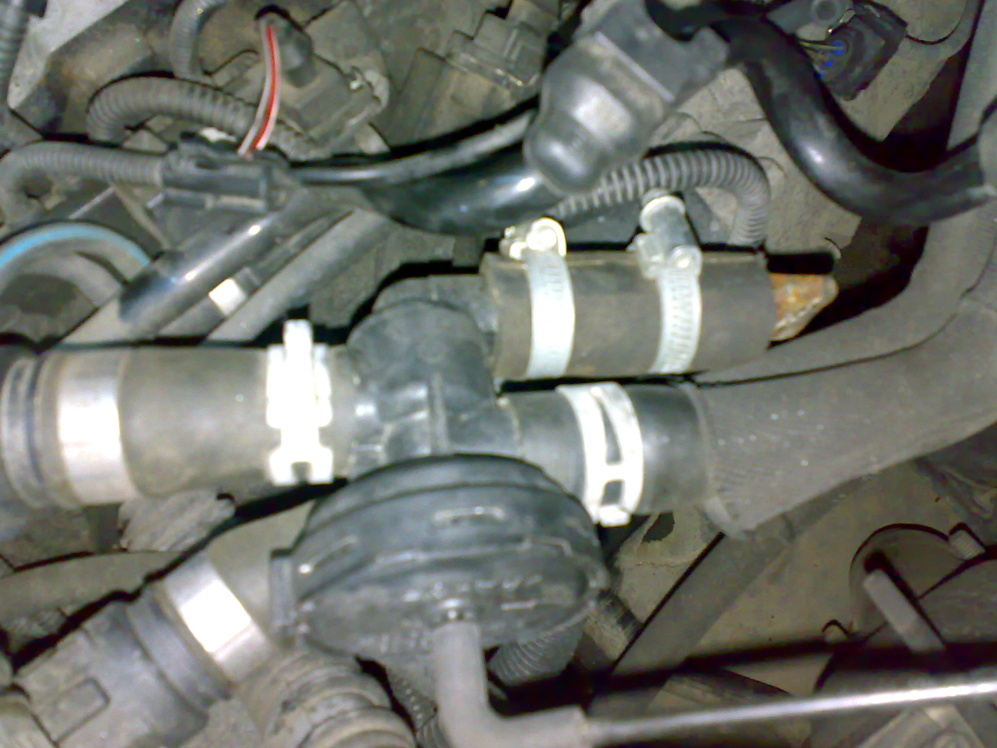 Jelikož jsem nechtěl ohřívat motor při funkci nezávislého topení, tak mám ještě přidaný třícestný ventil, řízený podtlakem, použitý z ovládání topení OPEL (Vectra, Astra...). Jelikož je řízený podtlakem, tak pokud motor je v klidu, tak tento ventil mi zavírá vodní okruh do motoru a tím to topí jen do výměníků, pokud nastartuju, tak se to podtlakem (v hadičkách podtlakové regulace) samo přepne a funkce je v původním stavu.