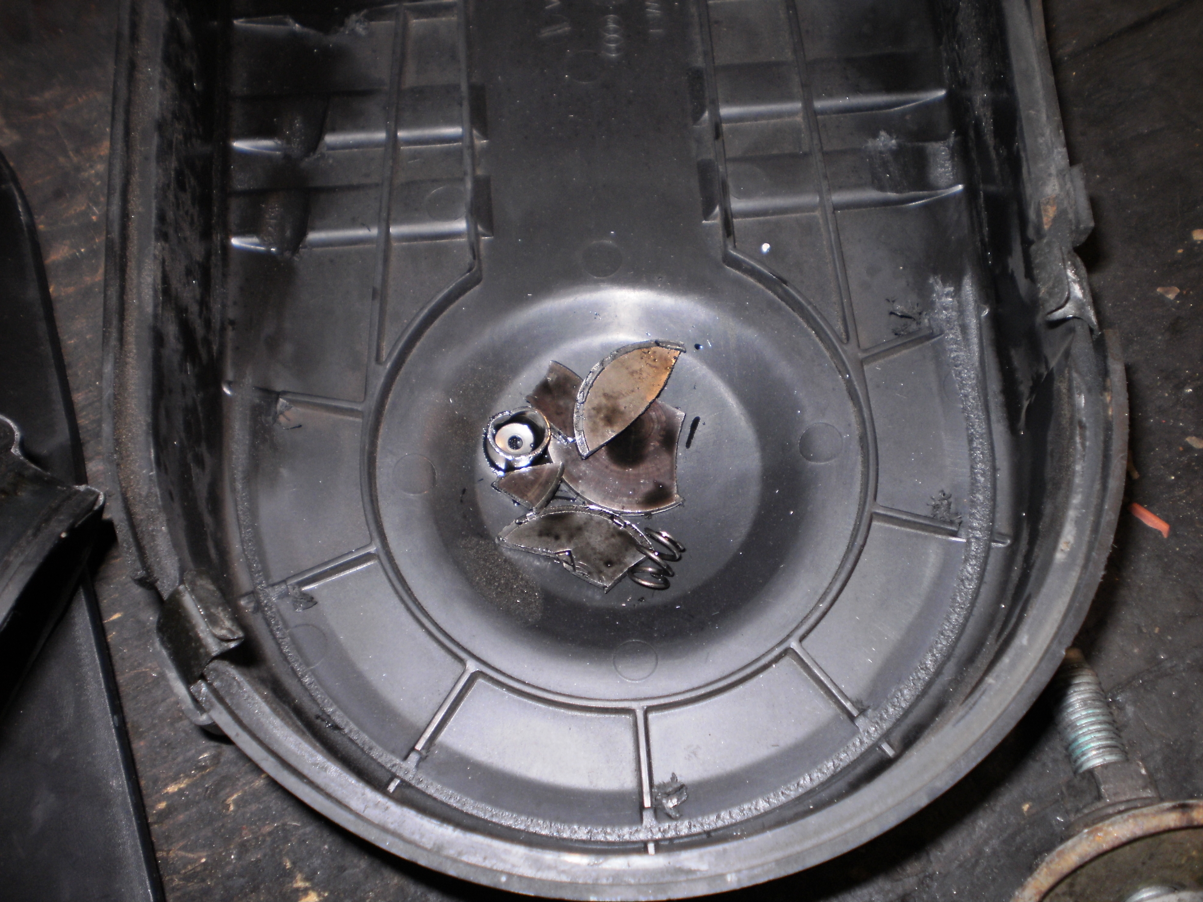 Tam došlo k tomu že v servisu dotahovali vodící(ne napínací)kladku tak důkladně až strhli závit v hlavě motoru a tím že to nebylo dotažené tak jak by mělo a bylo volné tak vodící kladka tahala rozvodový řemen jinam než má být a na druhé straně se povolila vodní pumpa protože pro změnu nebyla dotažená vůbec(vodní pumpou se u tohoto motoru napíná rozvodový řemen)tak to pomalinku přeskakoval řemen až se to potkalo a došlo k takovému poškození jaké je vidět na fotkách.