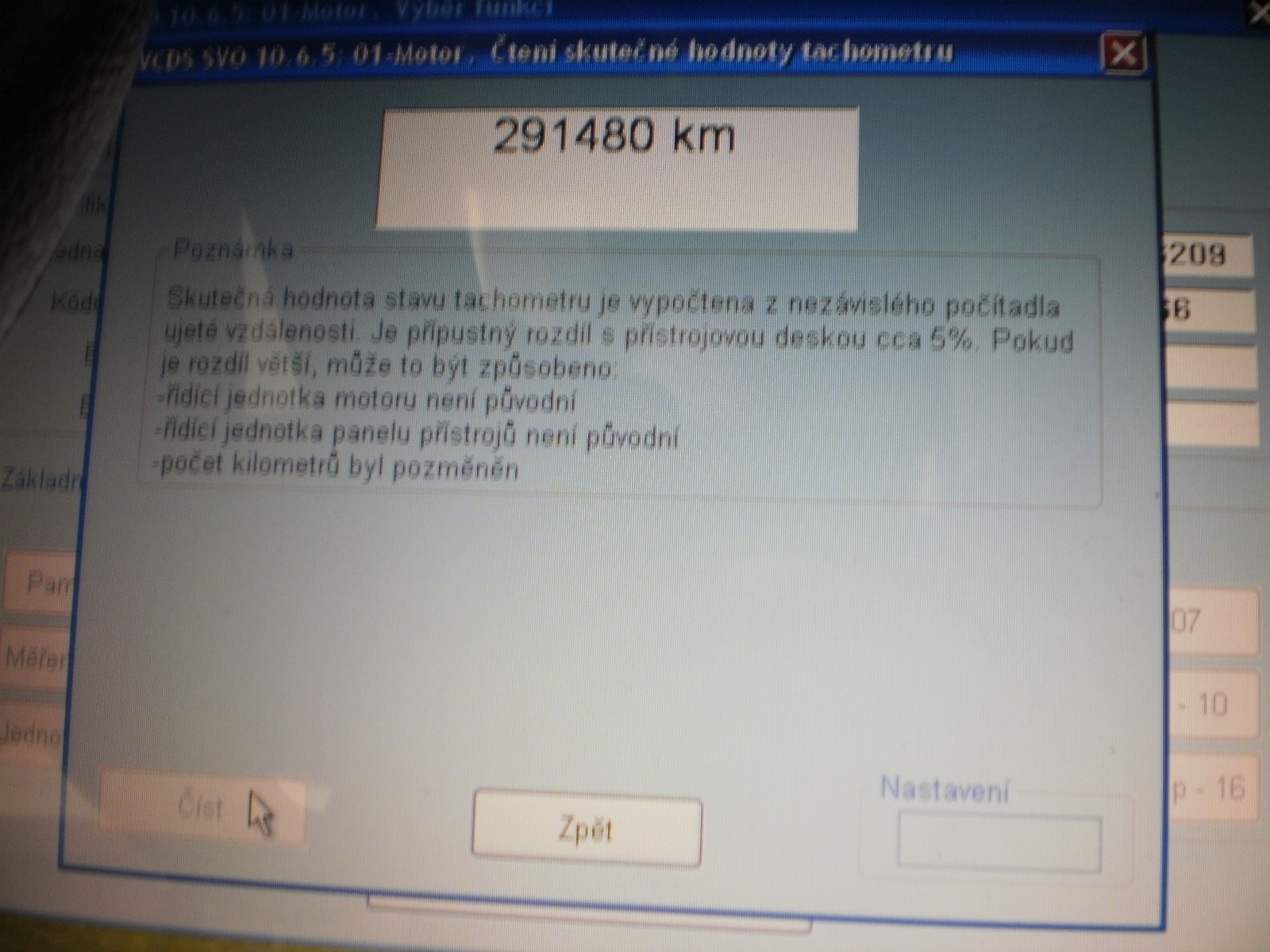 Tvoje otázka zda někdo naschvál nenačetl údaj km aby tě mohl pošpinit a nařknout.Tak vyčíst tento údaj z řj motoru je záležitostí chvilky a zákazník je u toho a to z důvodu aby se předešlo takovýmto výmluvám že to udělali v servisu,dále se dělala kompletní fotodokumentace poškozených mechanických částí motoru a převodovky.Majitel totiž zvažoval podání žaloby.